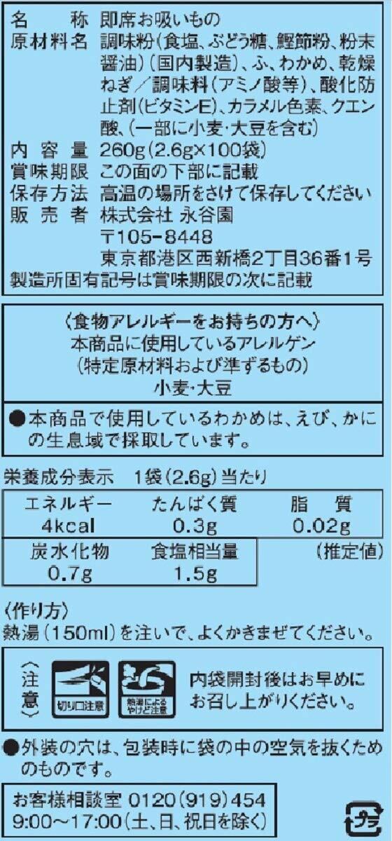 永谷園 業務用お寿司の友お吸い物 2.6g×100袋入