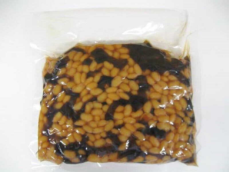 原材料:大豆(北海道)、砂糖、ぶどう糖、発酵調味料、水飴、昆布、醤油、食塩/ソルビトール、調味料(アミノ酸等)、pH調整剤、保存料(ソルビン酸K)、漂白剤(亜硫酸塩)、(一部に小麦・大豆を含む)