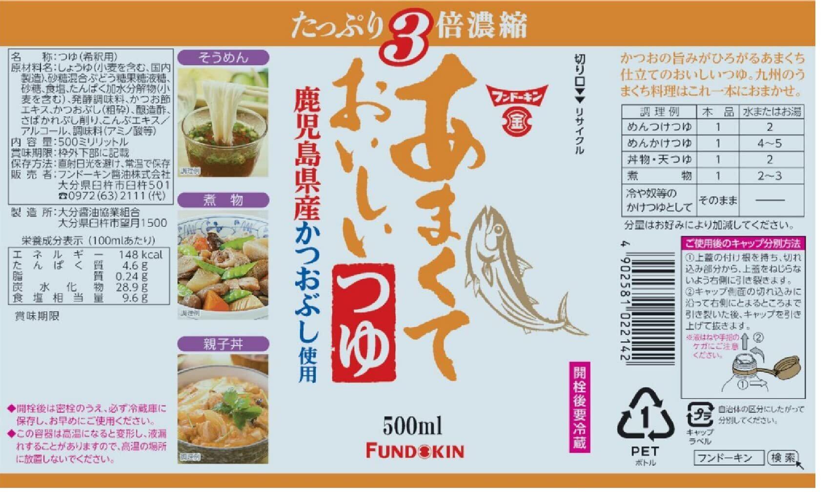 フンドーキン あまくておいしいつゆ 500ml×2本