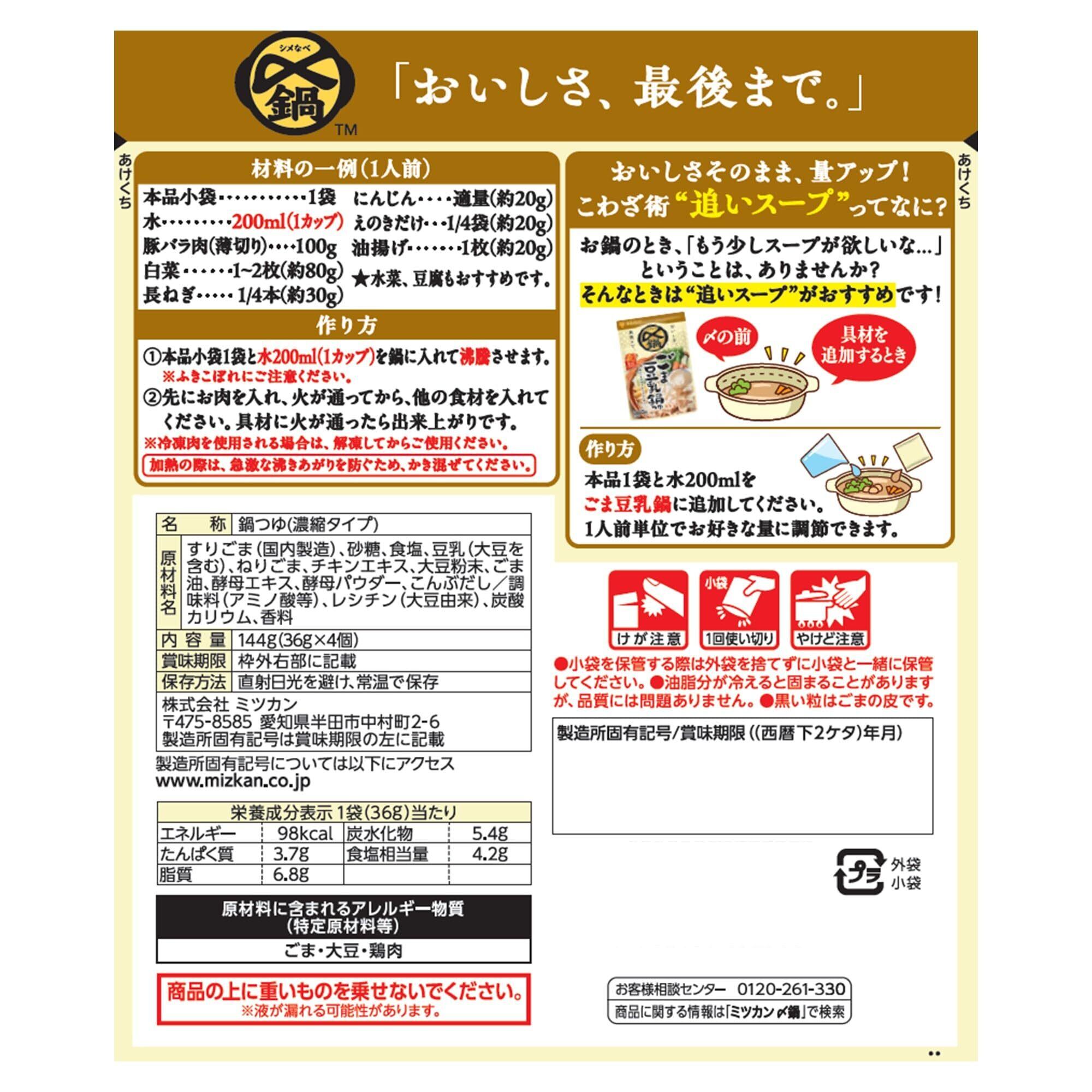ミツカン 〆まで美味しい ごま豆乳鍋つゆ ミニパック 鍋の素 1袋(36g×4袋)