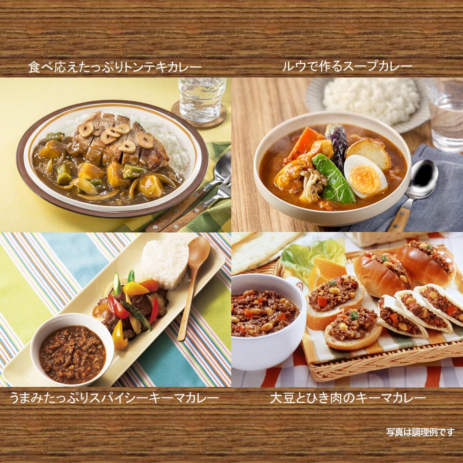 原材料:食用油脂(牛脂豚脂混合油、パーム油)、小麦粉、食塩、でんぷん、カレーパウダー、香辛料、ソテーカレーペースト、ガーリックパウダー、玉ねぎ加工品、脱脂大豆、ごまペースト、ローストオニオンパウダー、チャツネ、ホエイパウダー、粉乳小麦粉ルウ、チキンエキス、チーズ加工品、オニオンパウダー、砂糖、玉ねぎエキス、ローストガーリックパウダー、酵母エキス、小麦発酵調味料、ガーリックエキス、チーズ、ぶどう糖、ココナッツミルクパウダー、調味料(アミノ酸等)、カラメル色素、乳化剤、酸味料、香料、甘味料(スクラロース)、香辛料抽出物、(原材料の一部にりんごを含む)