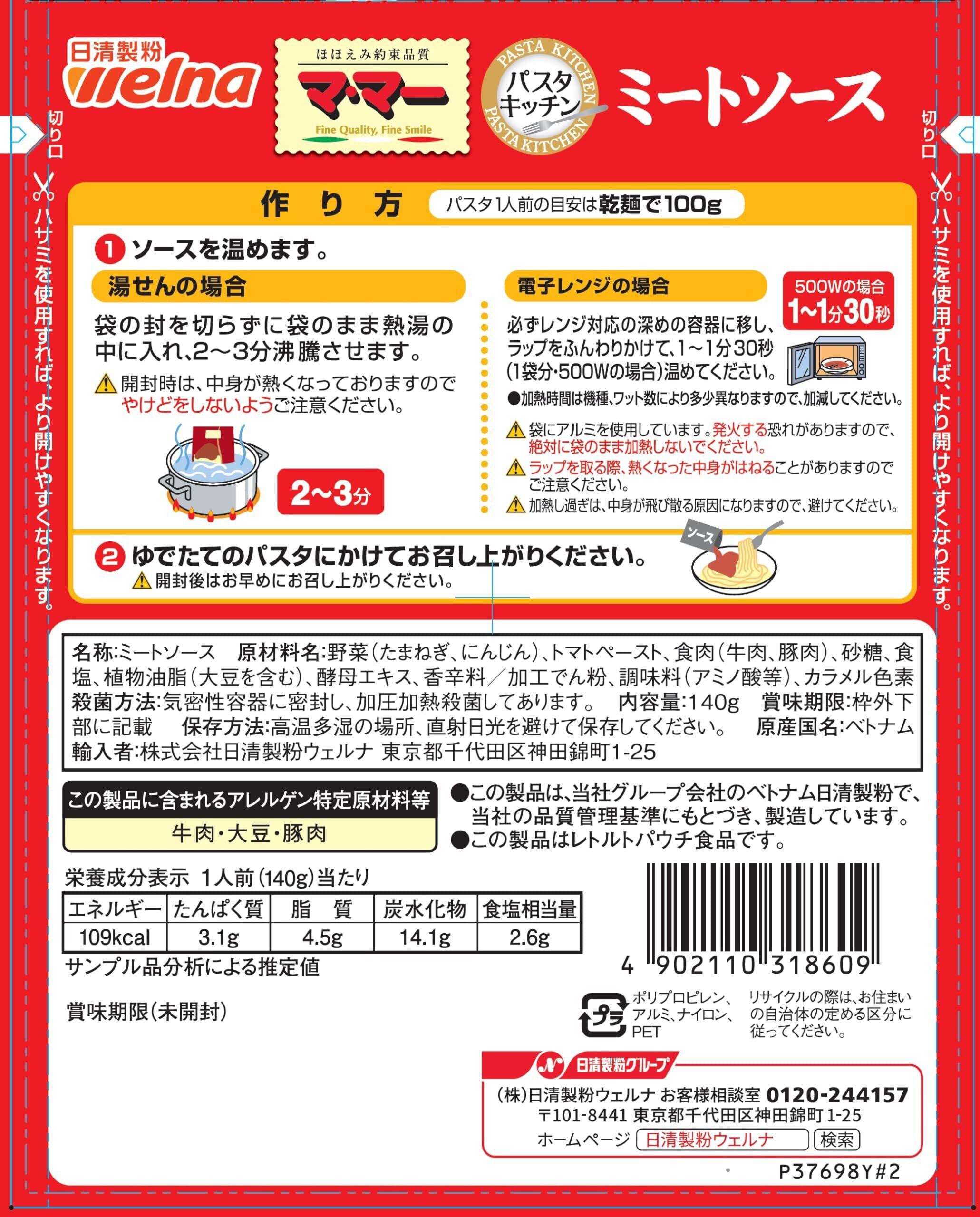 日清製粉ウェルナ マ・マー パスタキッチン ミートソース 140g×6個