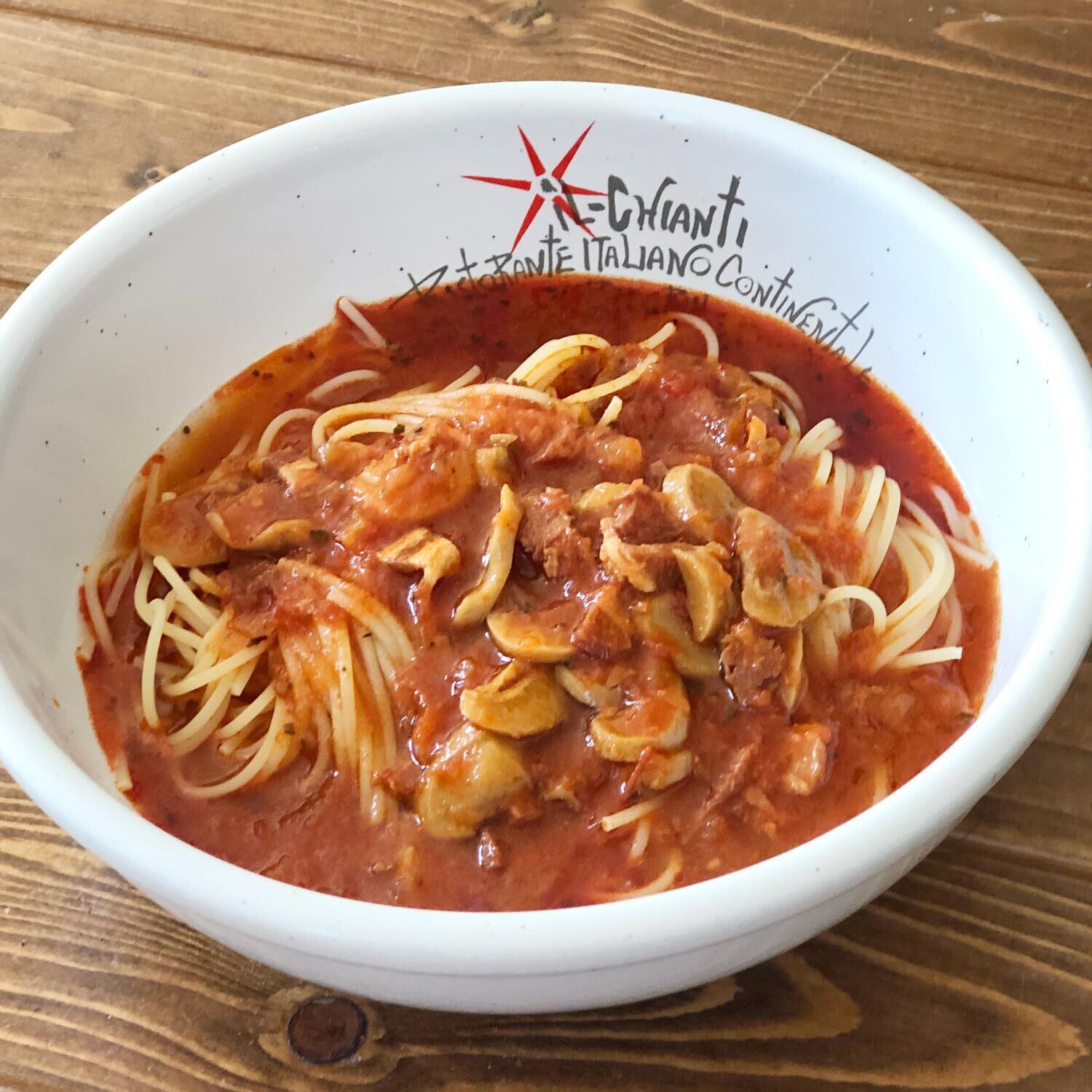イル キャンティ レストランの味。少し辛目のガーリックトマトスープ仕立てのスープパスタソースが、お手軽調理のレトルトパックで登場!
