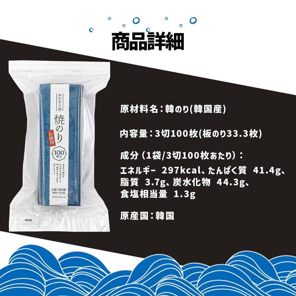 小浅商事 焼きのり おにぎり用 バラ 3切海苔 海苔 100枚 お徳用 国内加工