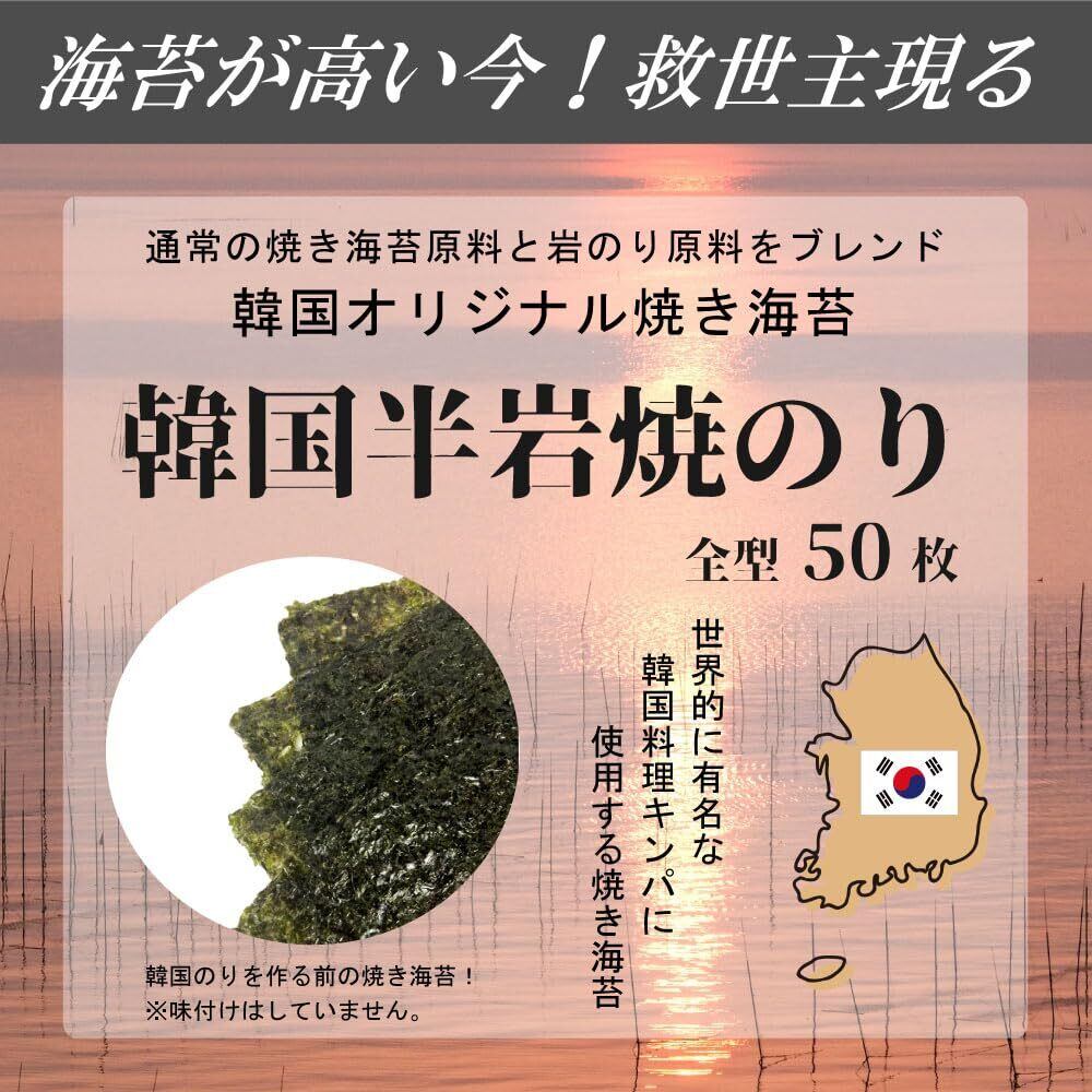 韓国半岩焼のり全型50枚 訳あり 海苔 焼き海苔 おにぎり キンパ 韓国のり チャック袋