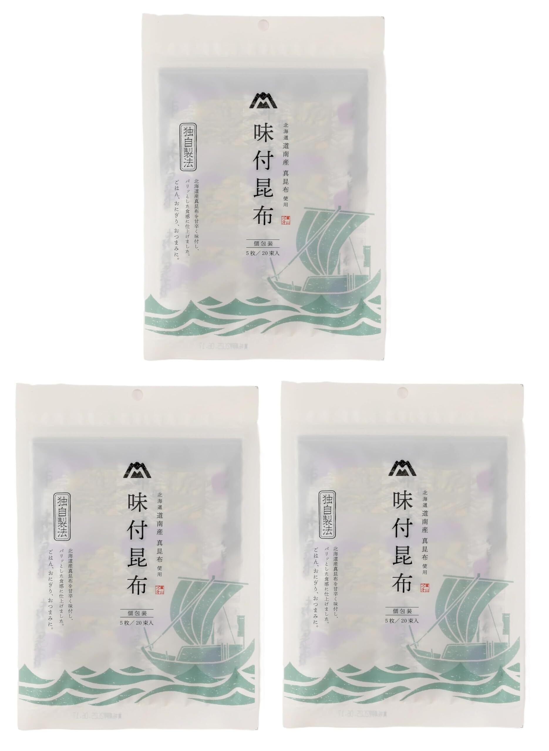 マツオ 味付昆布 20束(1束5枚入)×3袋 真昆布 昆布シート 北海道産 おつまみ ヘルシー