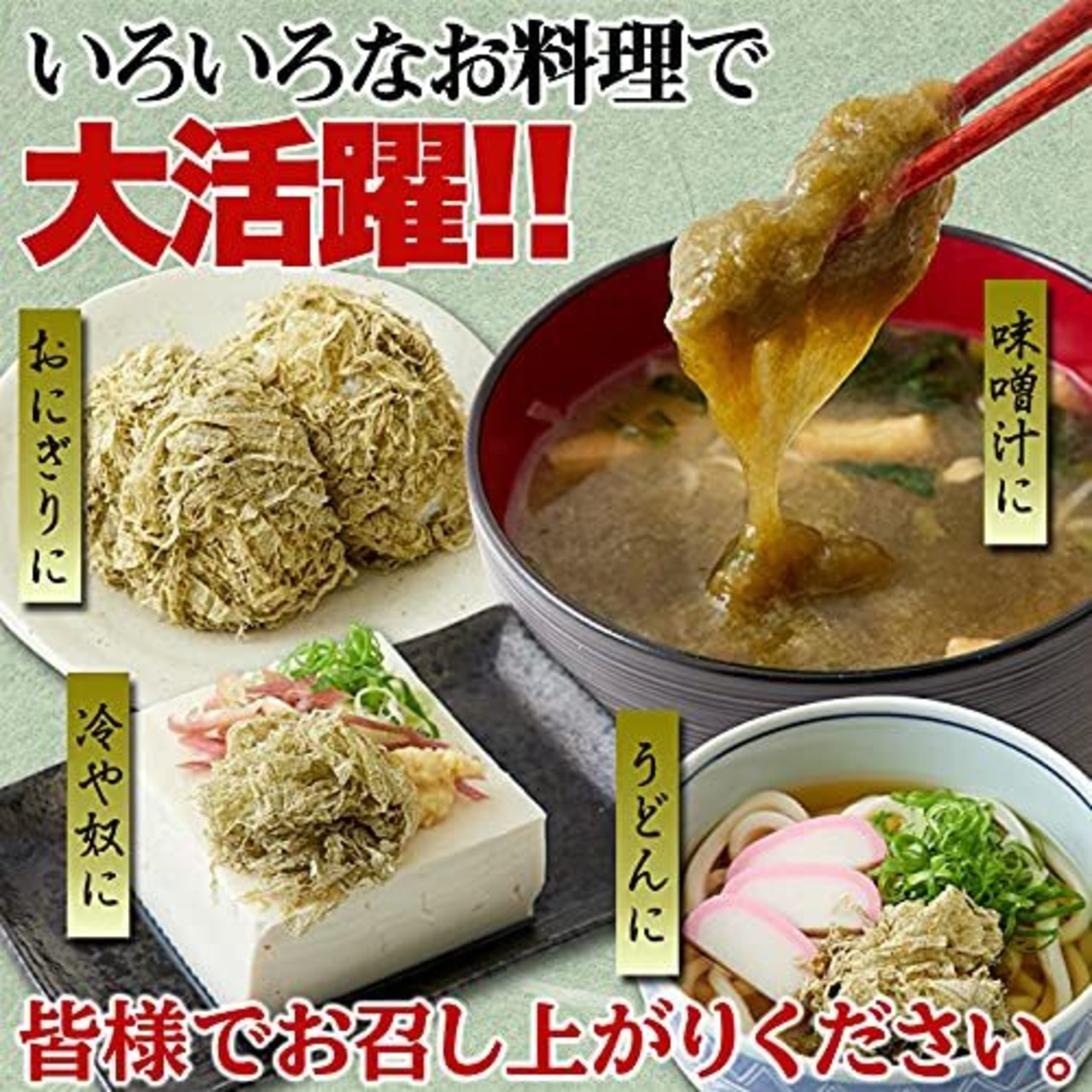 【いろいろなお料理で大活躍!!】食べ方はいろいろ!!おにぎりやうどん、お味噌汁や冷奴にちぎって入れるだけ!!細く糸状に削れているので、手でほぐせばふわふわとちぎれます。