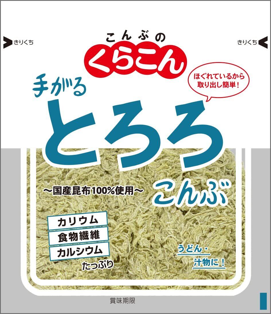 くらこんの『手がるとろろ』は国産の昆布を使用しており、安心してお召し上がりいただけます。ほぐれているので、袋から簡単に取り出しやすく、身体に必要な食物繊維やカルシウムがたっぷり含まれているのヘルシーな商品でございます。口の中に広がる昆布の旨味をお楽しみください。