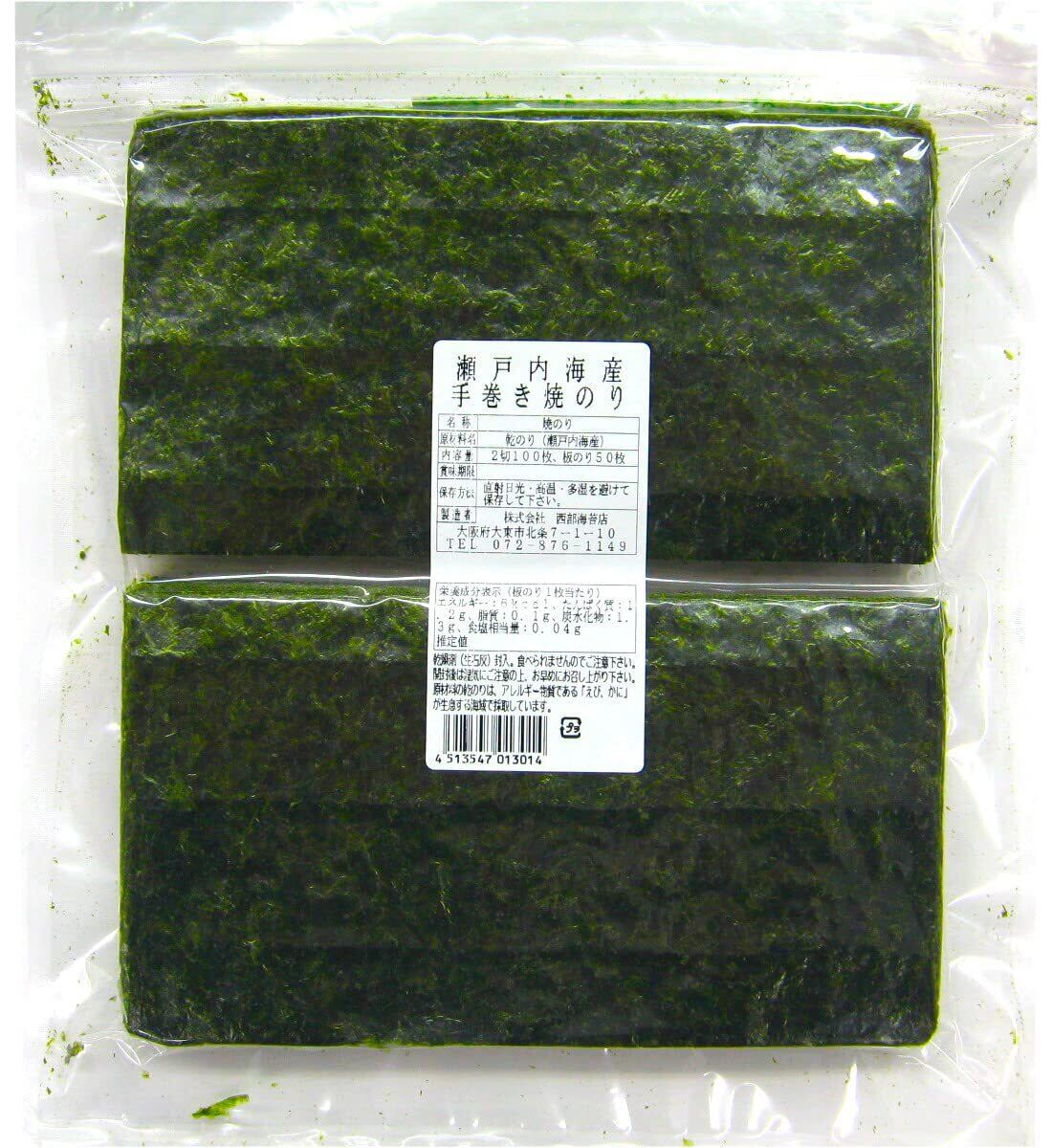 西部海苔店 瀬戸内海産 手巻き焼のり(ハーフサイズ1/2切) たっぷり100枚入り(全型50枚分)