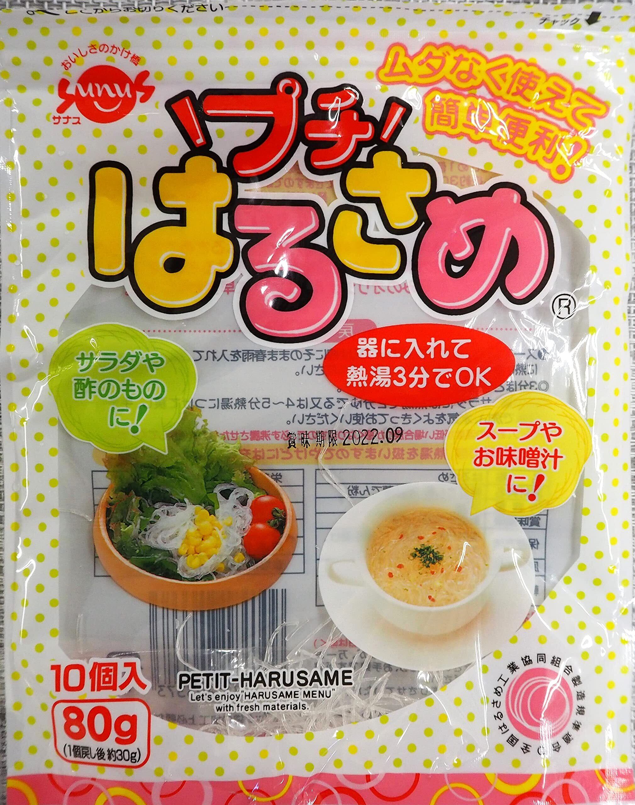 プチはるさめ1個で湯戻し後約30g1人分として最適です。