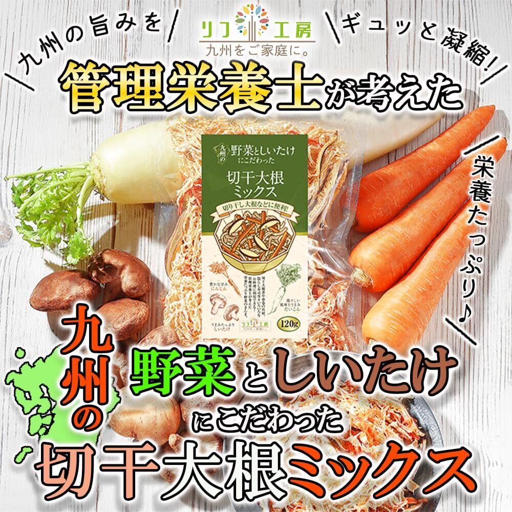 リフココから沢山のご愛顧をいただいております、オリジナルリフ工房ブランド「九州の野菜としいたけにこだわった」乾燥野菜シリーズの第2弾!!九州産の切り干し大根・人参・しいたけにこだわった3種類が入った乾燥野菜ミックス商品でございます!さらに!今回も同様に管理栄養士の先生に、野菜の種類と配合比率を味と栄養バランスを考えて頂きました!!