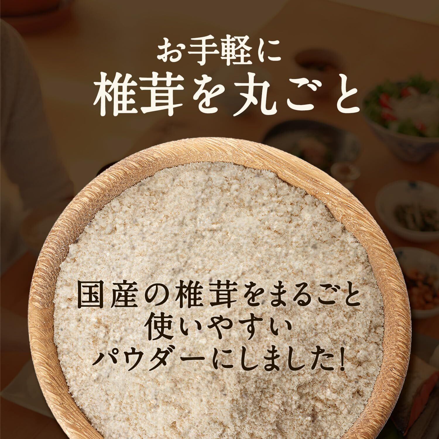 【商品説明】干し椎茸を丸ごと粉砕した椎茸の粉(椎茸パウダー)です。しいたけ特有の風味・香りを楽しむことができます!椎茸粉(椎茸パウダー)は日本料理・アジア料理だけでなく世界中の料理に取り入れることができます。動物性の食品ではなく植物性の食品なので、ビーガン・ベジタリアン料理にも使用され近年注目されております。使いやすく保存しやすいチャック袋になっております。