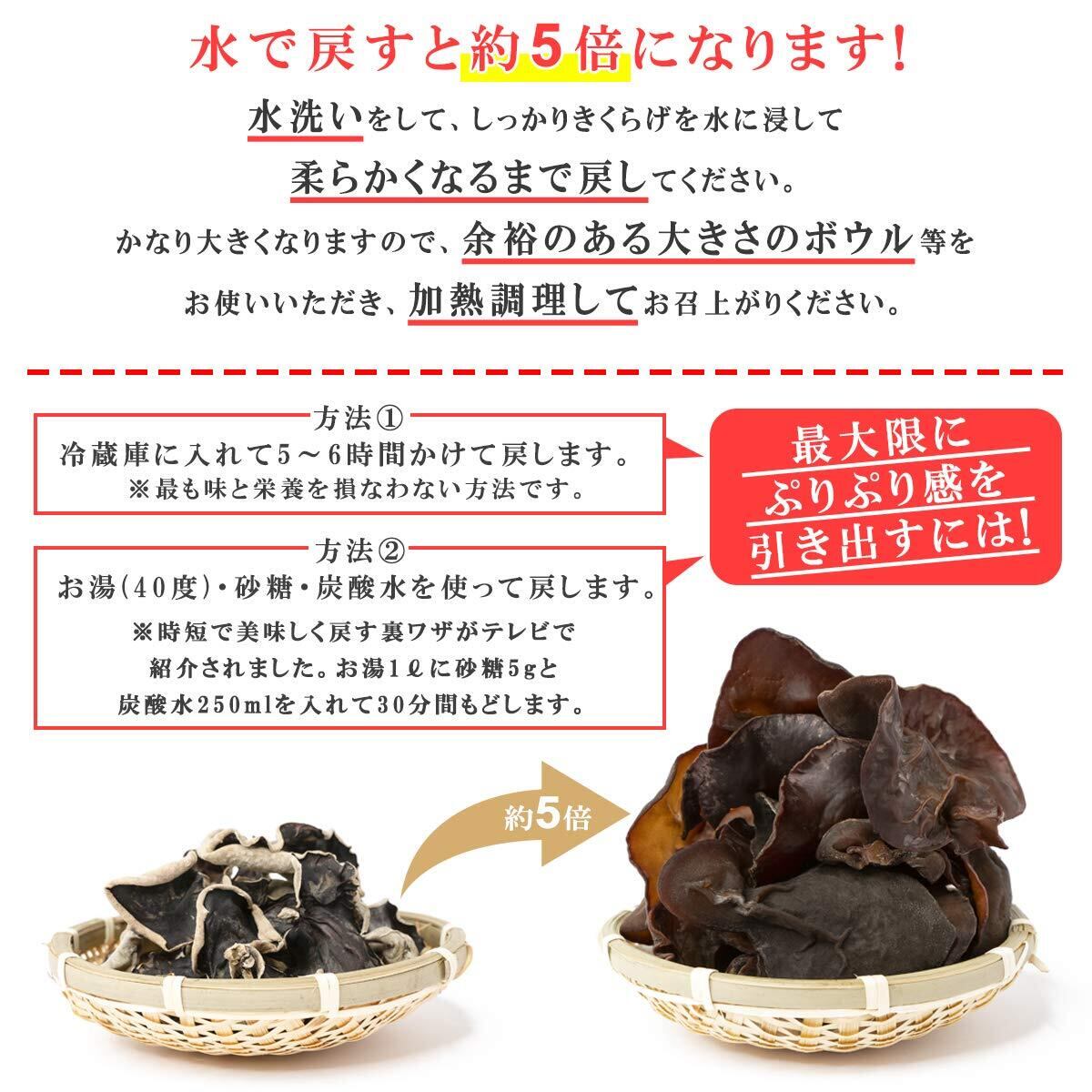 【品質にこだわった国産きくらげ】国内の契約農家で栽培された国産きくらげです。品質管理された環境で生産されているため、常に美味しくお召し上がりいただけます。原産国:日本