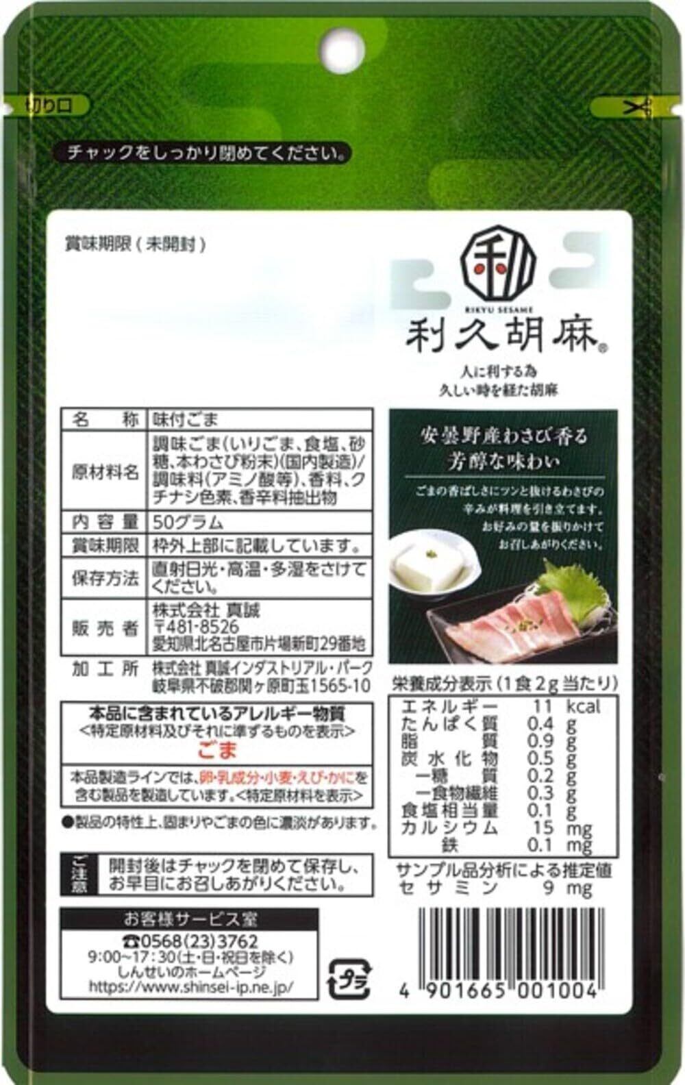 調味ごま(いりごま、食塩、砂糖、本わさび粉末)(国内製造)/調味料(アミノ酸等)、香料、クチナシ色素、香辛料抽出物