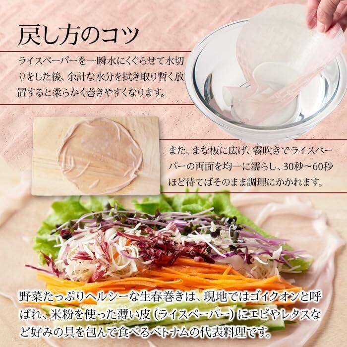 生春巻きの本場、ベトナムで厳しい認証を受けた指定工場で作られた赤米のライスペーパーです。
