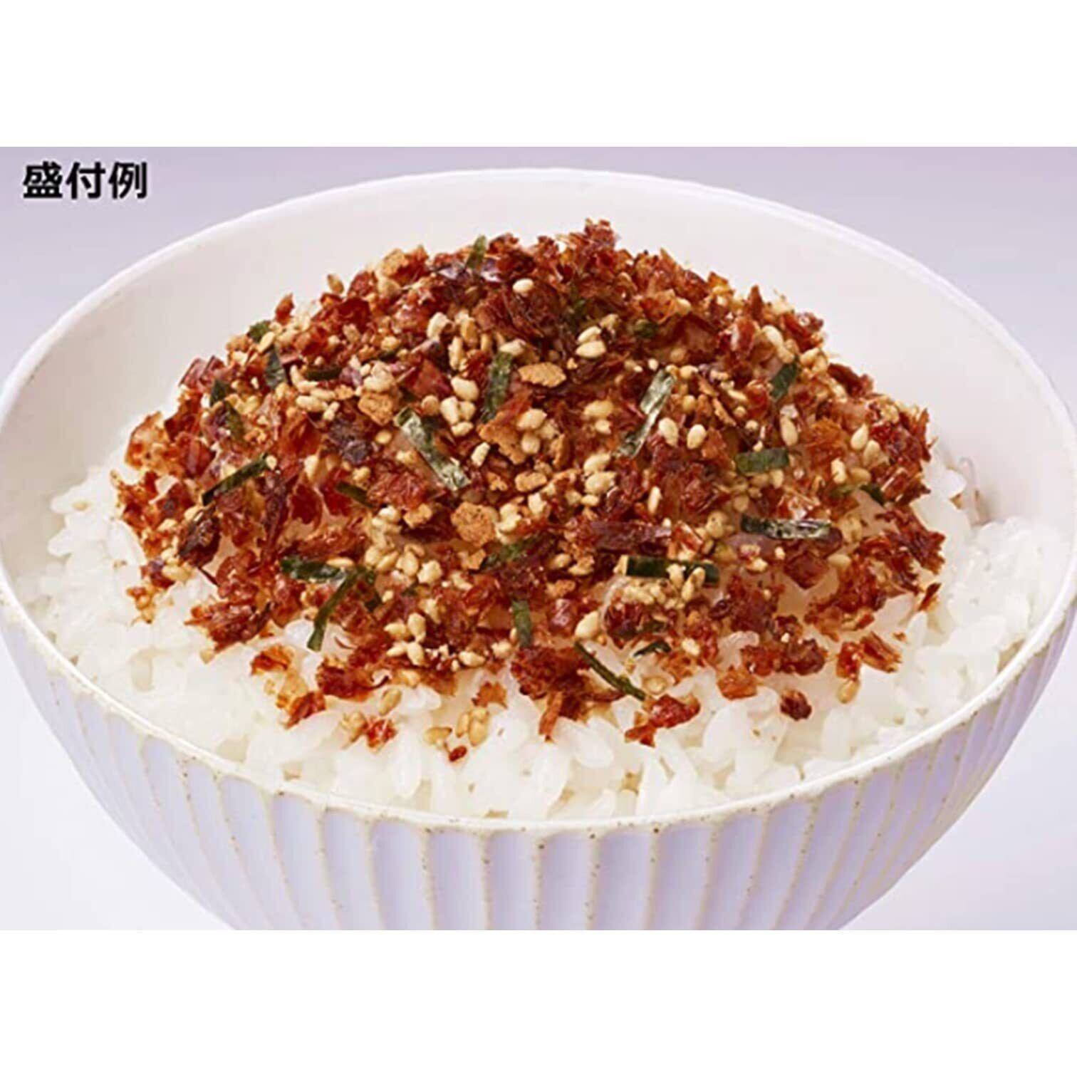 甘めに味付けしたザクザク食感の味かつおと、きざみのり、ごまをブレンドしたふりかけです。味かつおの旨みがきいた風味豊かな味わいです。
