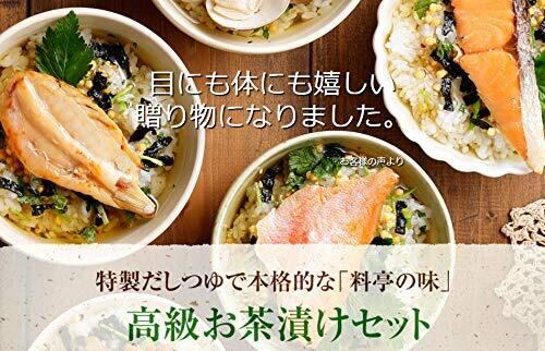 【商品名】高級お茶漬けセット 8食入り(お茶漬け専用茶付き)【商品区分】食品・飲料【内容量】【各1袋づつ】金目鯛茶漬け、まぐろ茶漬け、鰻茶漬け、鮭茶漬け、いわし塩焼茶漬け、磯海苔茶漬け、焼海老茶漬け、あゆ茶漬け、お茶漬け専用茶(5g×10パック)