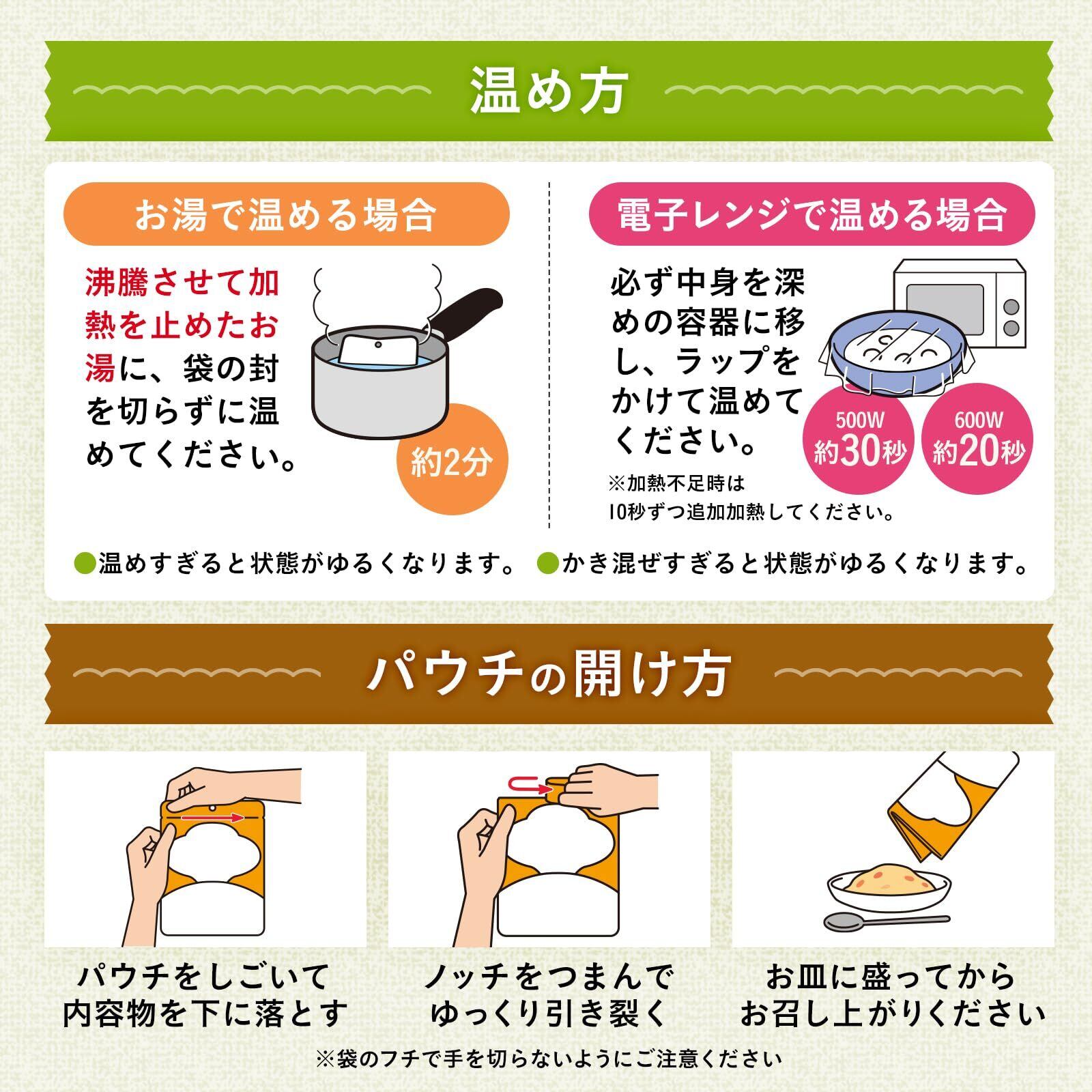 【召し上がり方】レトルト食品はすべて調理済ですので、温めなくても召しあがれますが、温めるとより一層おいしく召しあがれます。