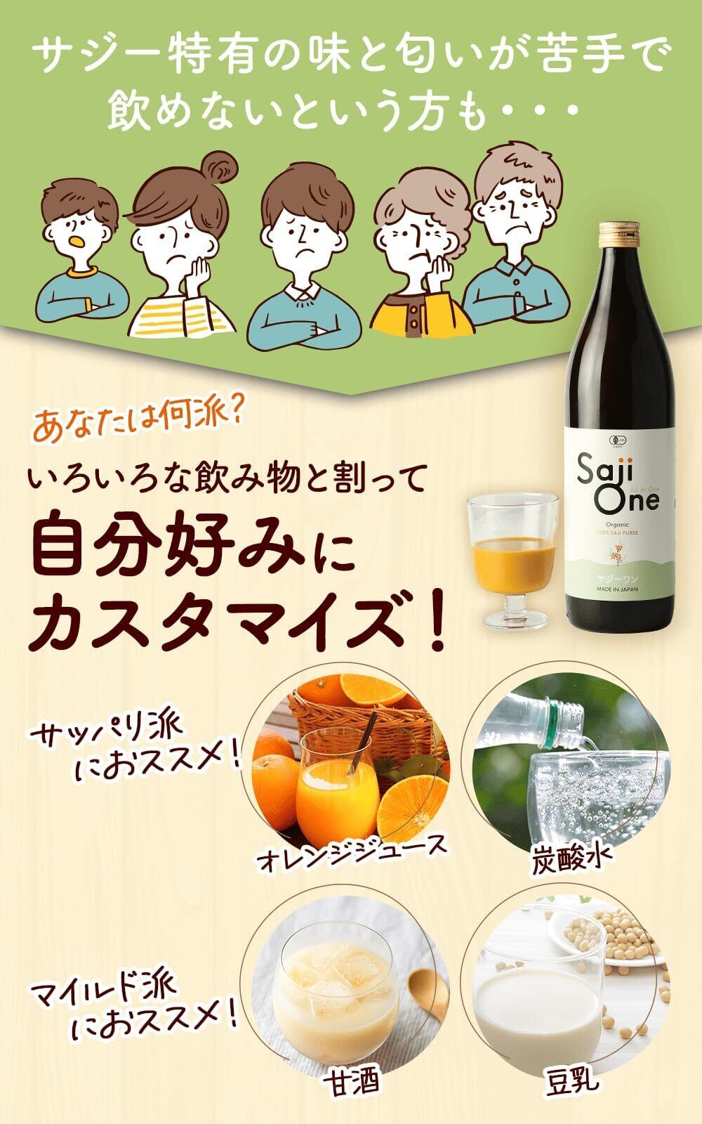 サジーワン SajiOneオーガニック サジー 有機JAS認定 鉄分 無添加 サジージュース100% オーガニック 900ml サジーベリー 商品紹介チラシ付