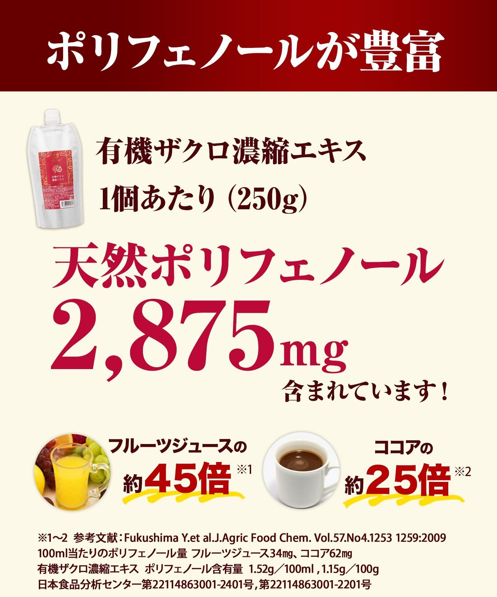 【有機ザクロ濃縮エキスは10倍濃縮】1個(250g)で、たっぷり2500g分のザクロジュースが作れます。※250gを10倍希釈時