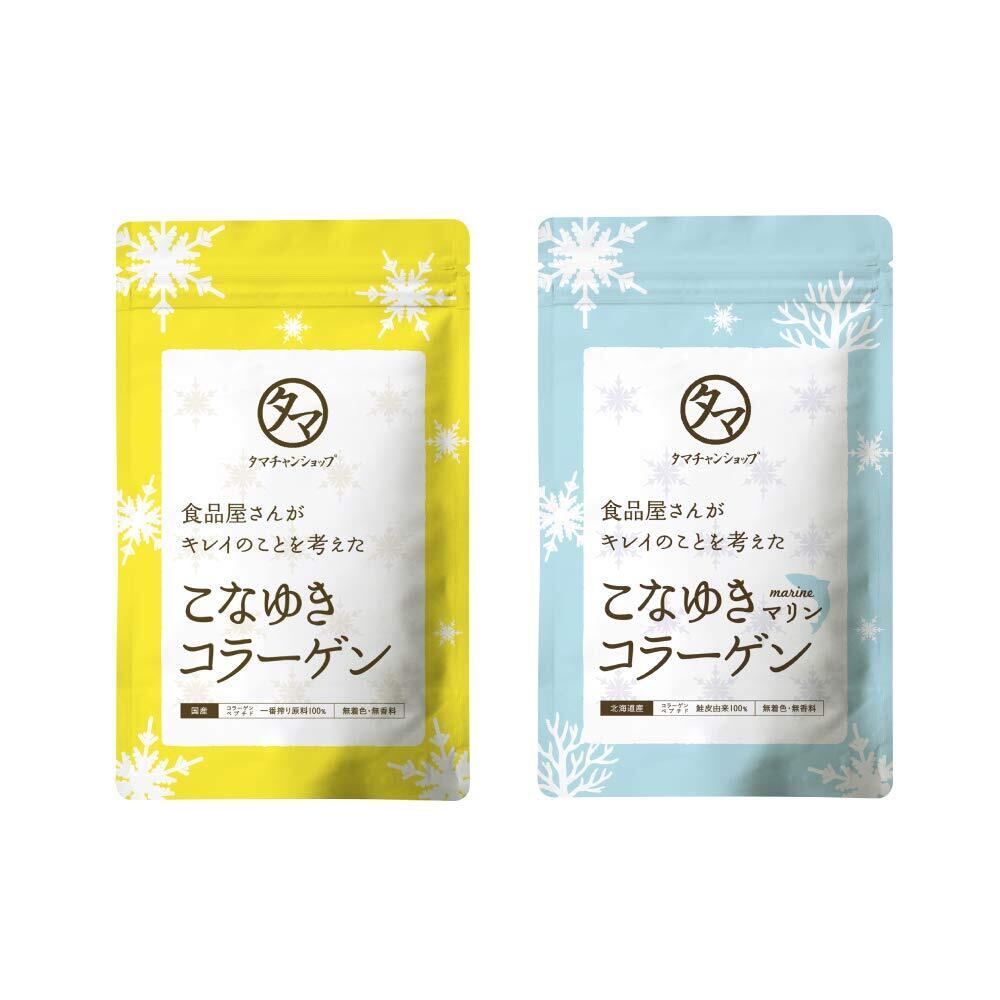 タマチャンショップ 美粉屋 こなゆきコラーゲン・マリンセット コラーゲンパウダー 動物性+海洋性 低分子コラーゲンペプチド 純度100% 無味無臭 100g 2袋