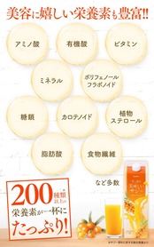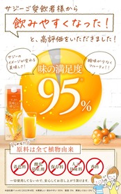 原料に有機JAS認定されたオーガニックサジーベリー、オレンジ、柚子、ステビアを黄金比でブレンド、酸味を抑えて甘みをプラスした飲みやすいサジージュース