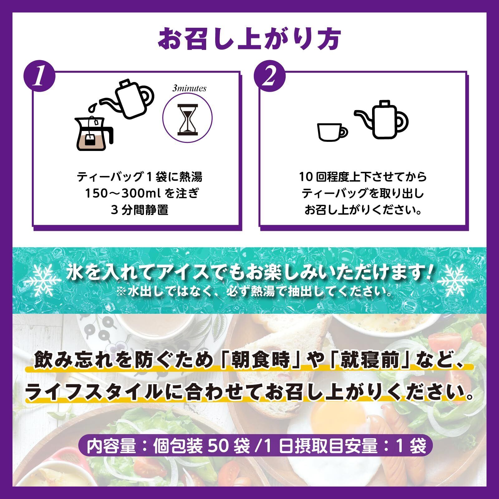 【おすすめの飲み方】ティーバッグ1袋に熱湯150~300mlを注ぎ3分間静置した後、10回程度上下させてからティーバッグを取り出しお召し上がりください。※本品は食品ですのでお好きな時にお召し上がりいただけます。飲み忘れを防ぐため「朝食時」や「就寝前」など、ライフスタイルに合わせてお召し上がりください。