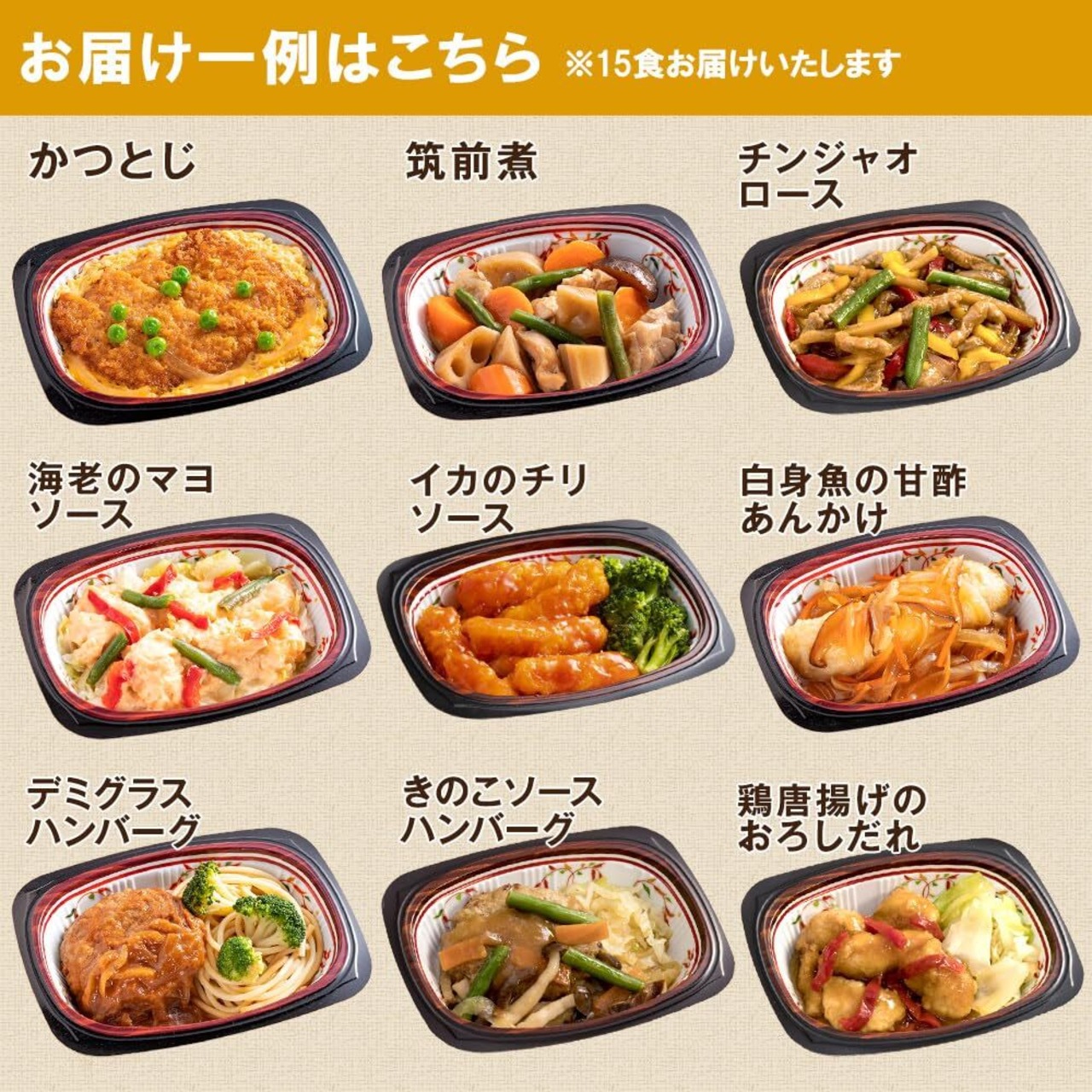 【セット内容】かつとじセット、筑前煮セット、チンジャオロースセット、海老のマヨソースセット、イカのチリソースセット、白身魚の甘酢あんかけセット、デミグラスハンバーグセット、きのこソースハンバーグセット、鶏唐揚げのおろしだれセット、牛肉じゃがセット、鶏のにんにく醤油だれセット、肉味噌豆腐セット、豚肉とごぼうの柳川風セット、さばの生姜煮セット、鶏のすき煮セット