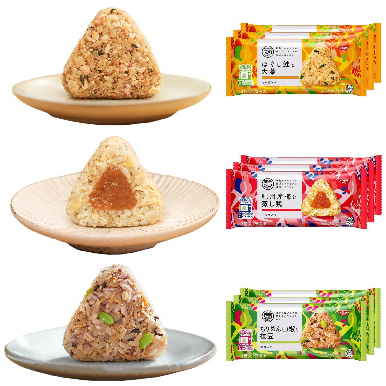 冷凍 完全メシ DELI 日清食品 おにぎり 冷凍おにぎり 和風おにぎりセット ほぐし鮭と大葉 紀州産梅と蒸し鶏 ちりめん山椒と枝豆 各3袋(3個入)× 3種