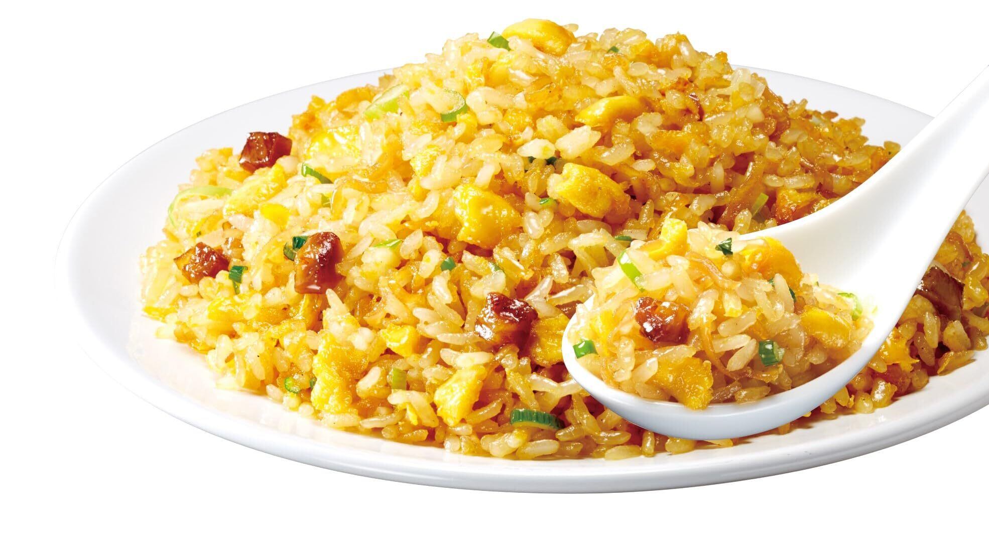 ほんのり甘い、ふんわりたまごが特長の「金の炒飯」です。焦がし醤油の香りと鶏ガラをベースに、たまごのやさしい甘さが広がる子どもが大好きな味わいに仕上げました。たまご、チキンラーメン、特性"鶏チャー"、ねぎが入っています。日清食品冷凍が長く前から販売している、幅広い世代に受け入れられている商品です。味が濃すぎない優しい味わいです。売り上げの一部が国連WFPの「学校給食プログラム」に寄付される「レッドカップキャンペーン」に参加しています。