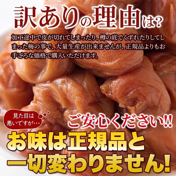 【お手ごろな価格!】加工途中で皮が切れてしまったり、樽の底でくずれたりしてしまった梅を使用しており、見た目は悪いですが、正規品と味は一切変わりません!