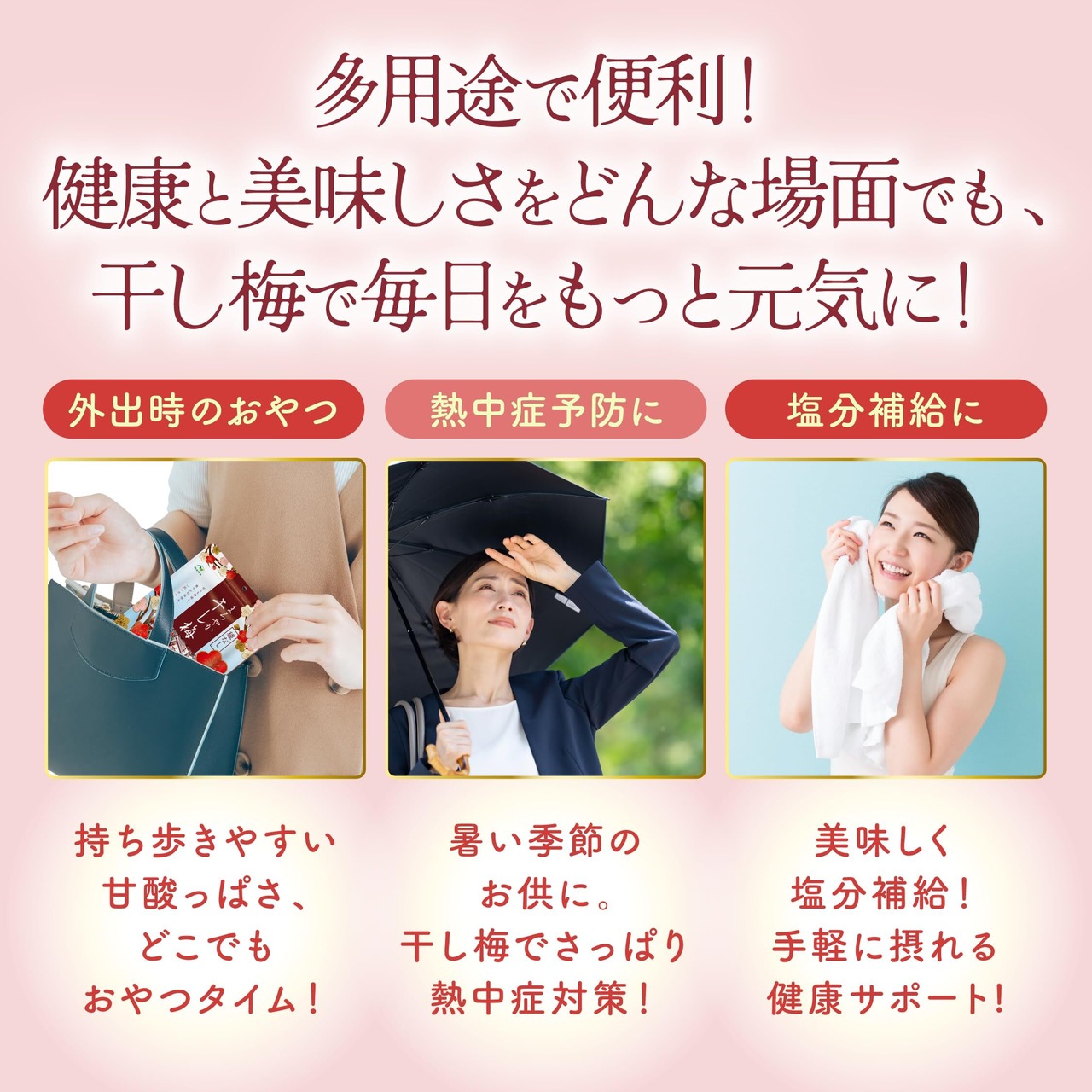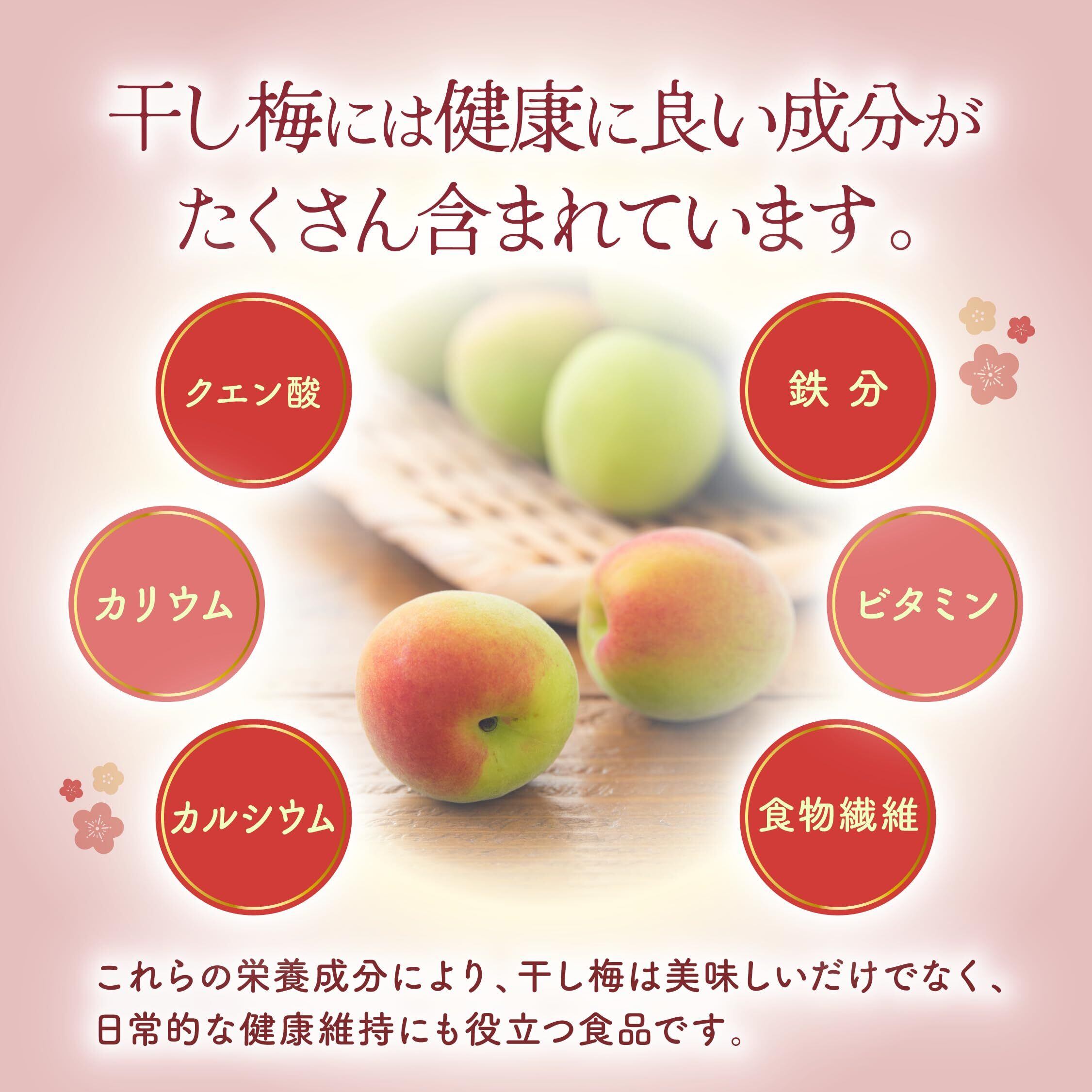 【種なし】:種抜きで食べやすいソフトな食感 種を取り除いた柔らかい干し梅で、お子様やご年配の方にも食べやすくなっています。