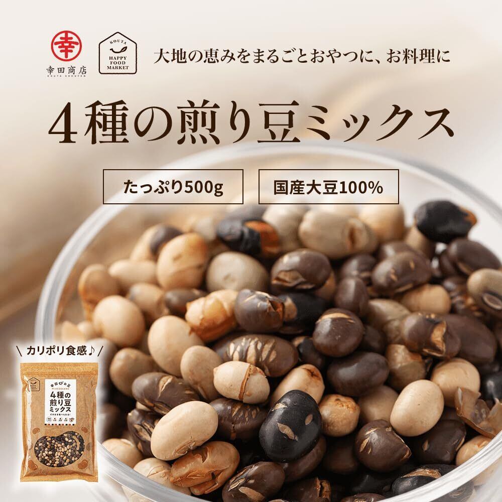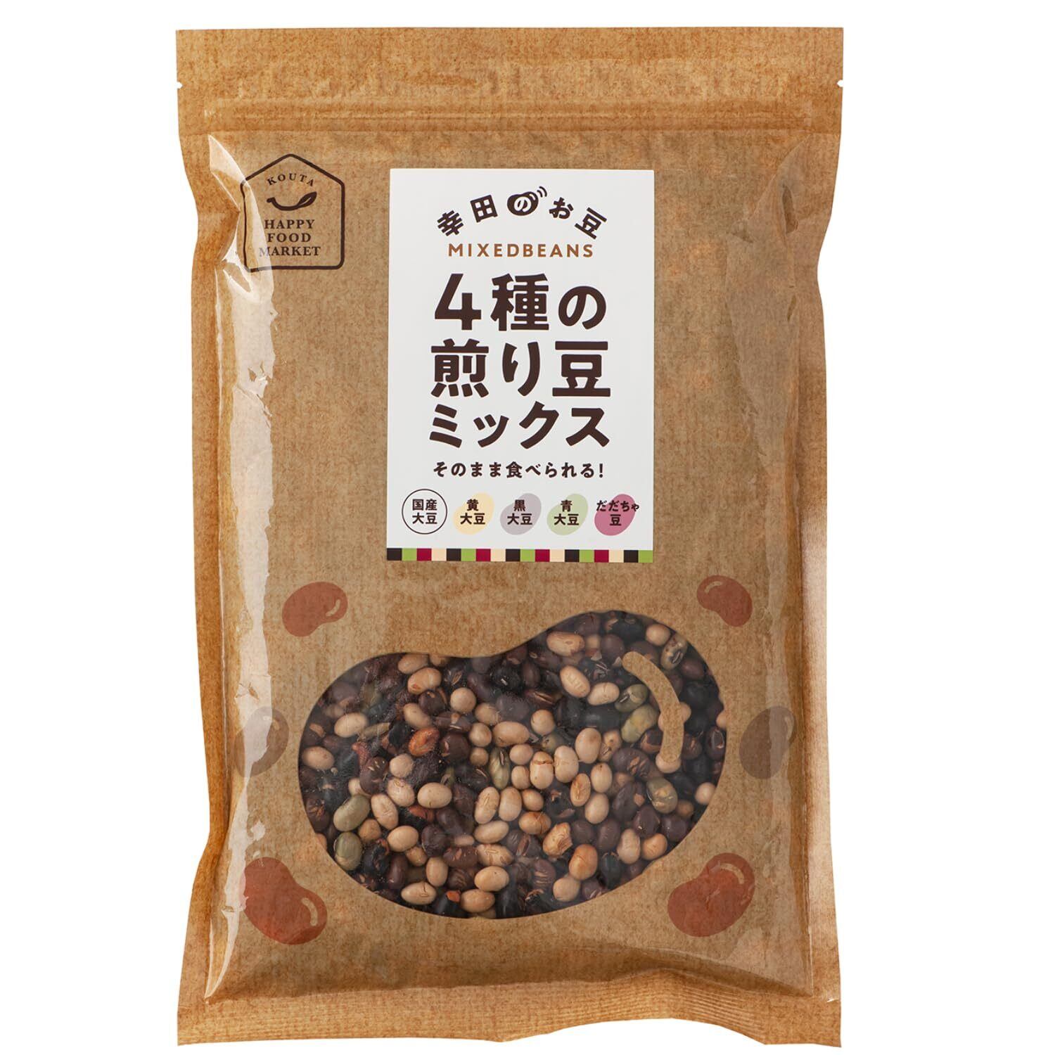 KOUTA HAPPY FOOD MARKET [4種の煎り豆ミックス500g] 大豆 国産 乾燥豆 大容量 黄大豆 黒大豆 青大豆 だだちゃ豆