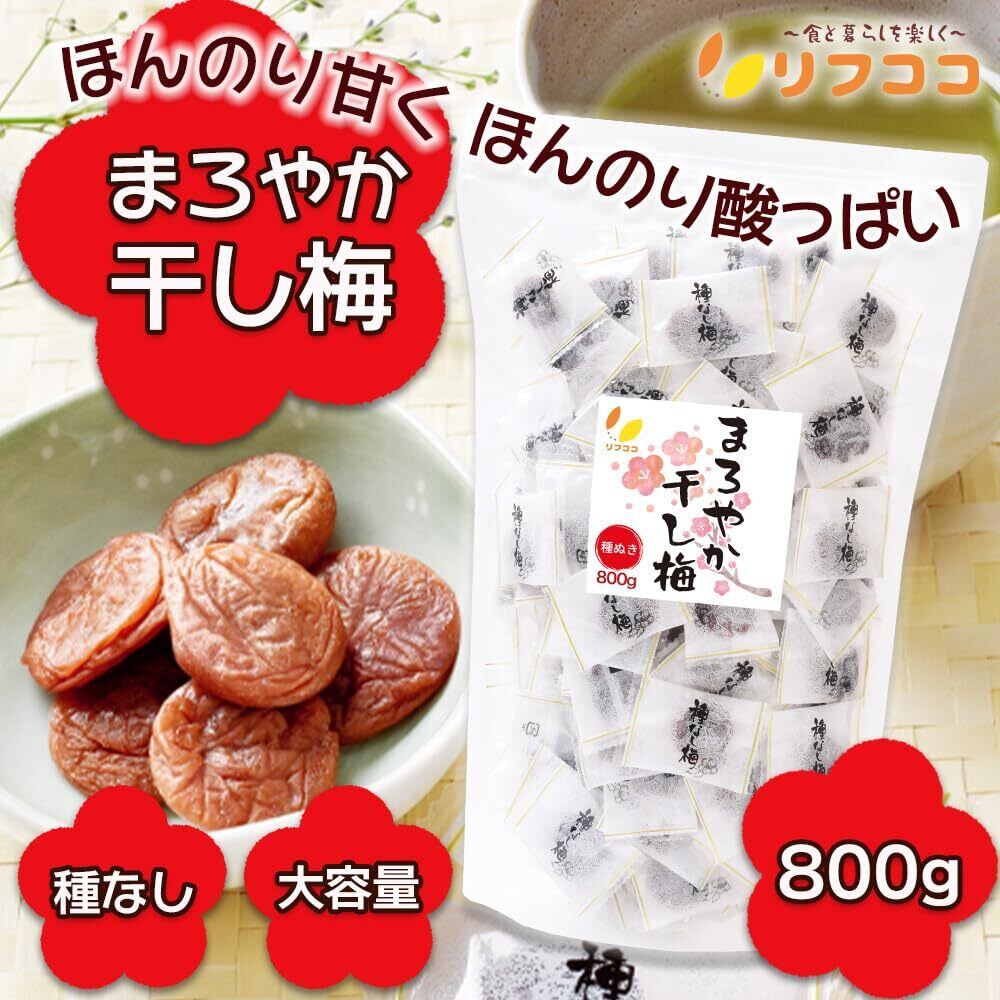 リフココ まろやか干し梅 種なし梅 個包装 800g(約210個)大容量 業務用サイズ 保存に便利なスタンド袋入り 干し 梅 梅干し 種なし梅 お菓子 うめ 熱中症 対策 おやつ お手軽 お茶請け 梅お菓子