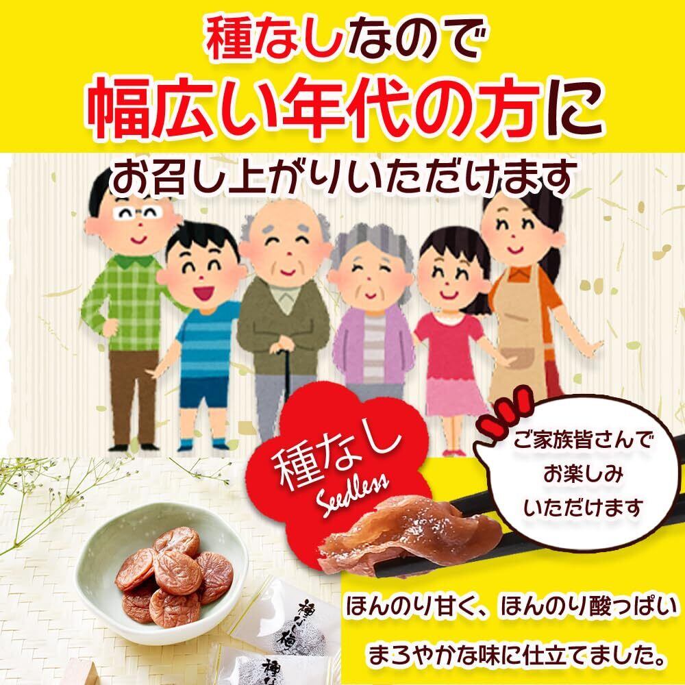 【商品詳細】種なしで幅広い年代の方でも食べやすいやわらかい食感。個包装で持ち運びに便利、屋外作業やスポーツ・登山時の塩分補給や熱中症対策にも。チャック付き袋に入れてお届け致します!