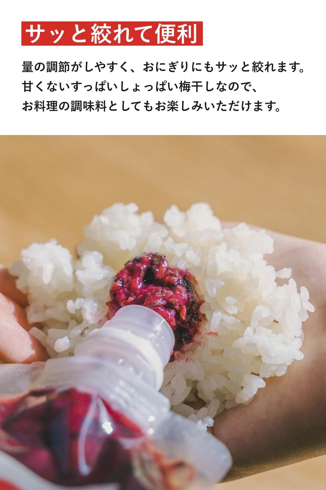 添加物等は一切使用しておらず、粒が大きく皮が柔らかい、完熟した紀州南高梅ならではの、フルーティーな味が楽しめます。甘くないすっぱいしょっぱい梅干しなので、どんな料理にも合います。