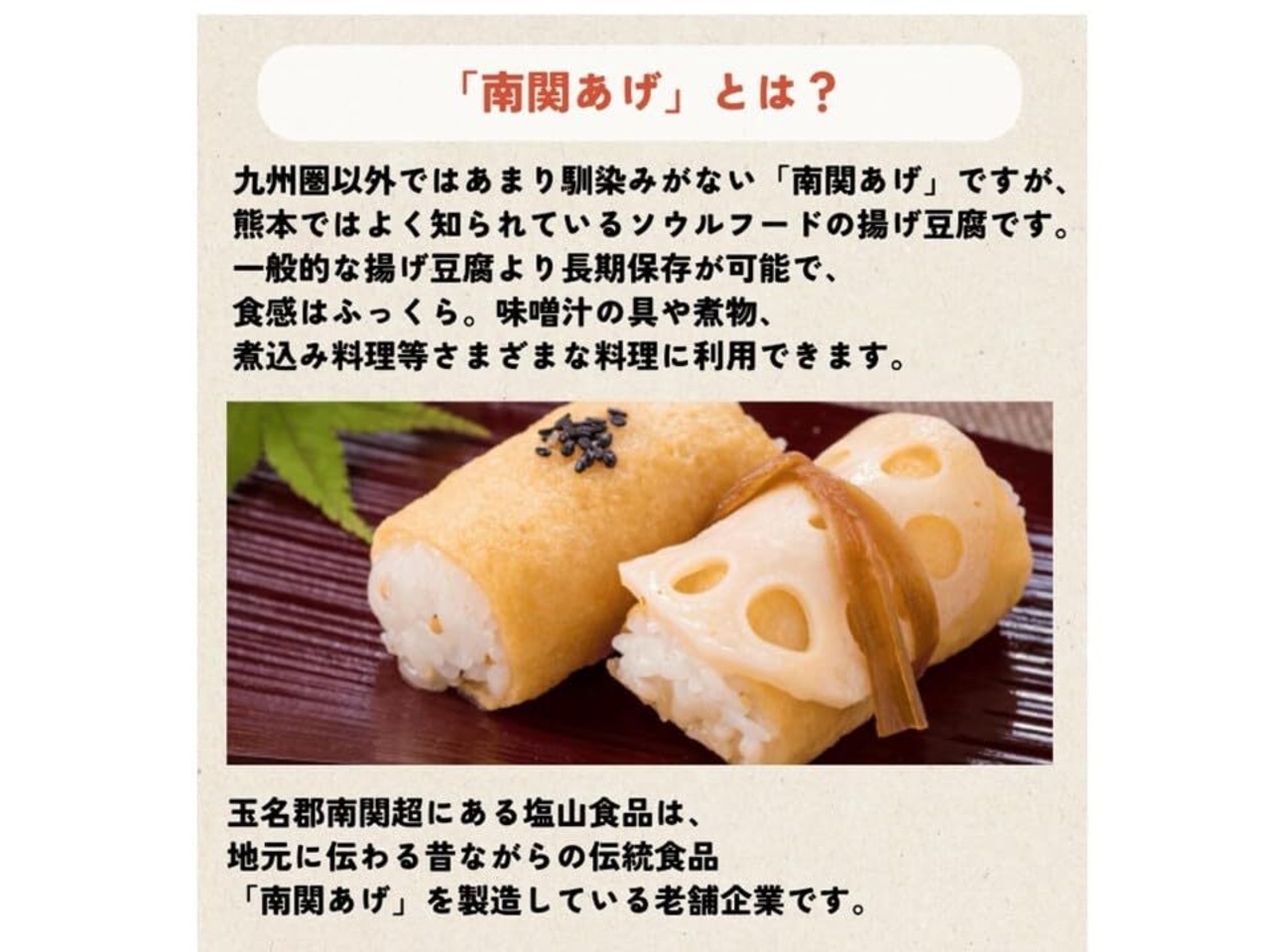 南関あげは煮込み料理にもぴったりです。 味噌汁や煮物などの具として煮ると柔らかな食感になり、味もよくしみ込んでなんとも言えぬ美味しさです!