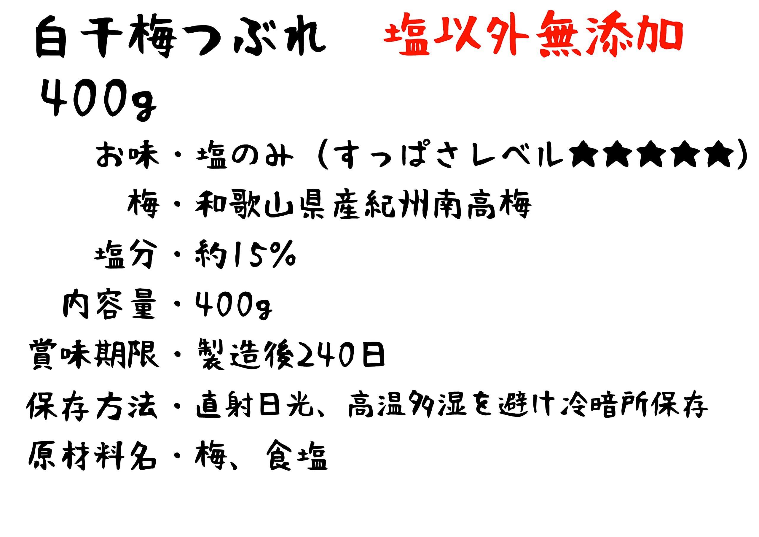 梅干し 紀州南高梅 無添加 訳あり 白干梅つぶれ 400g 塩分15% 塩のみ 梅の蔵本舗 戸越銀座