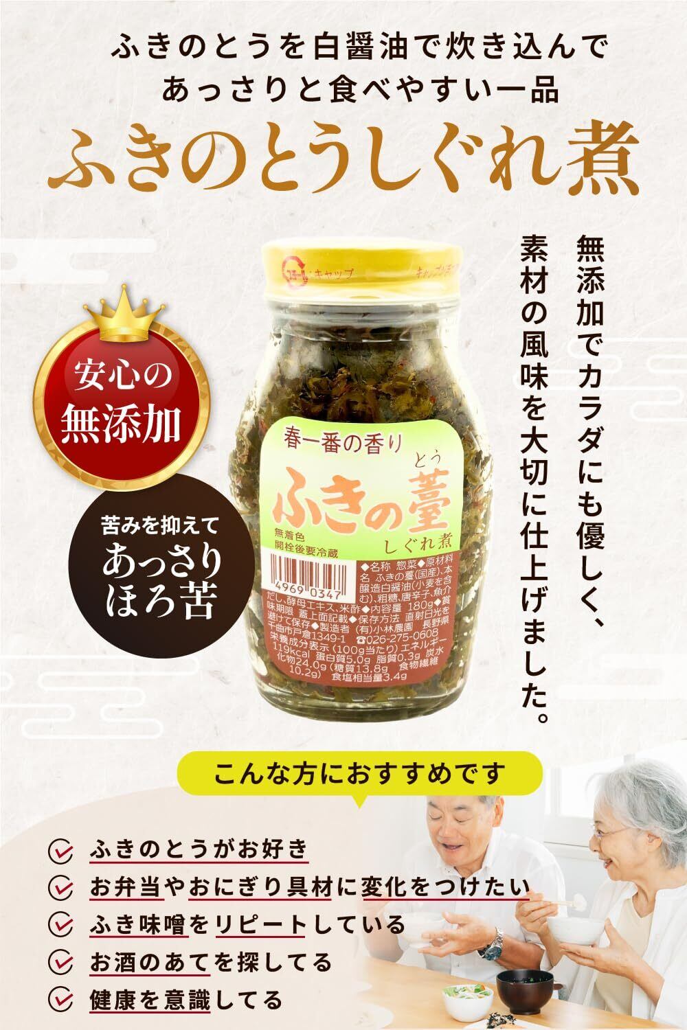 小林農園 ふきのとう しぐれ煮 180g (1個) ペタシン 国産 100% 無添加 特有の香気とあっさりしたほろ苦さ 職人による手作りのこだわり品 ごはんのお供や料理のトッピングにも使える 蕗の薹 フキノトウ 蕗のとう