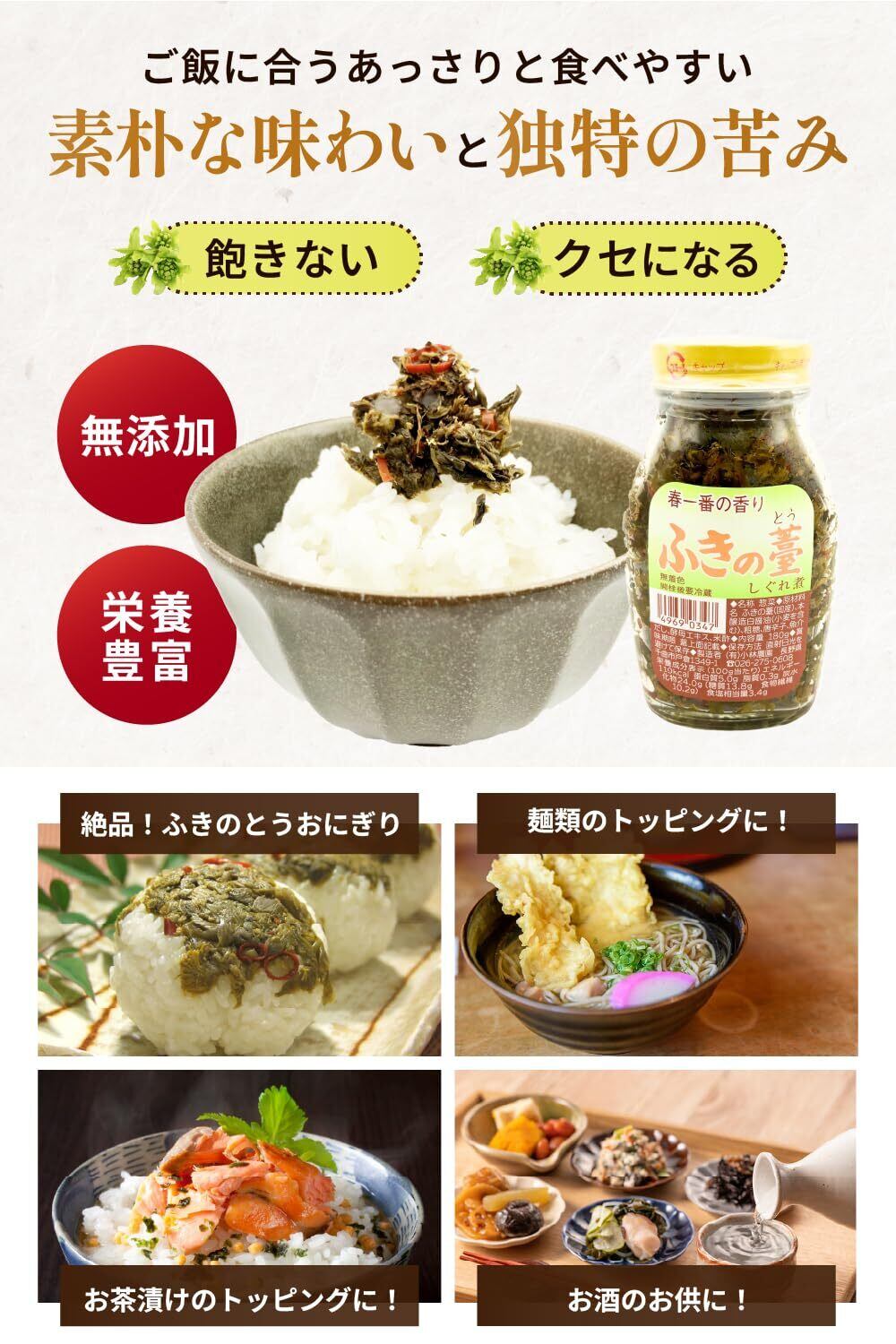 ️【落ち着く味わい】春一番を感じていただけるふきのとうを特有の香気とほろ苦いだけどあっさりした風味に仕上げました。アクセントに輪切唐辛子を加えました。