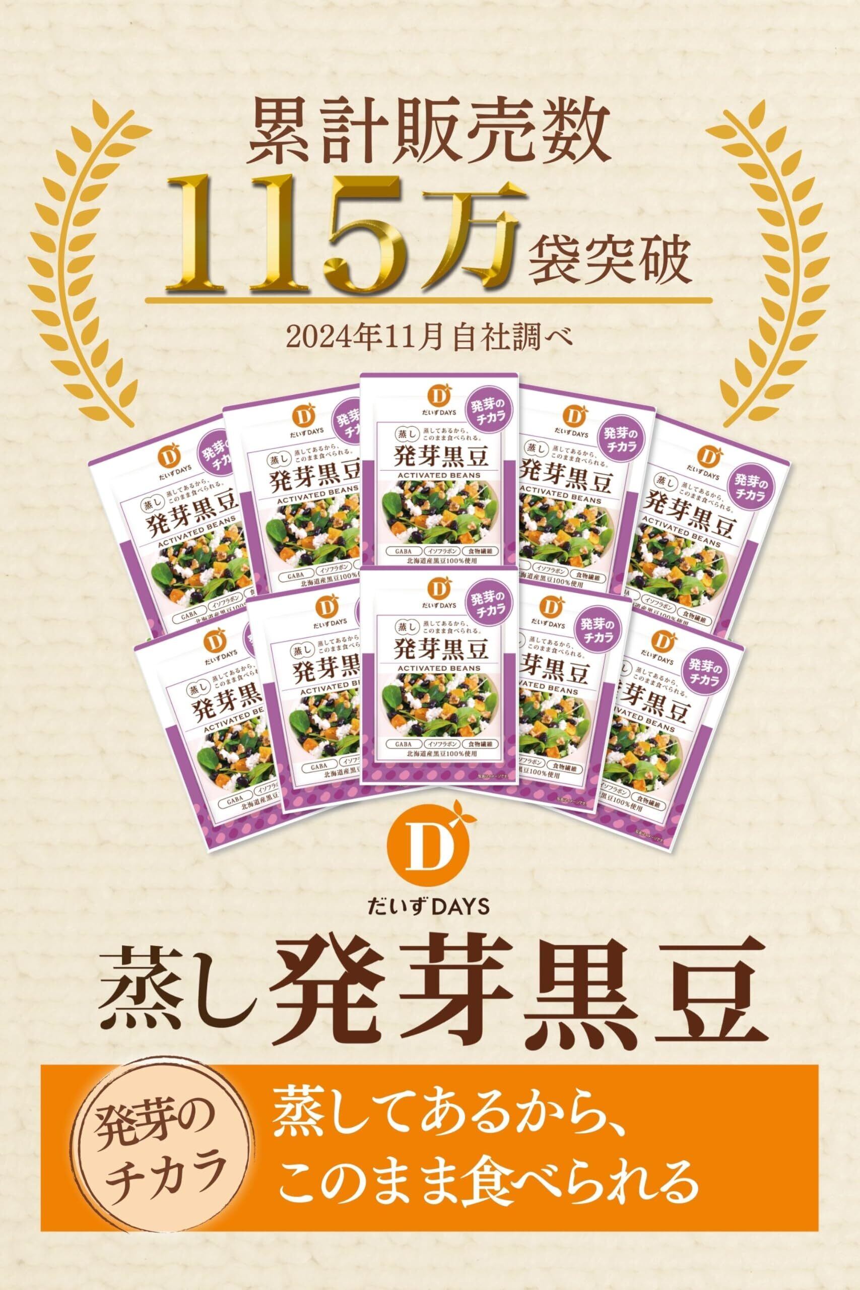 プレミアムな蒸し大豆「スーパー発芽大豆」のレギュラーサイズ。 和洋中さまざまな料理に使っていただける、料理にぴったりのサイズです。