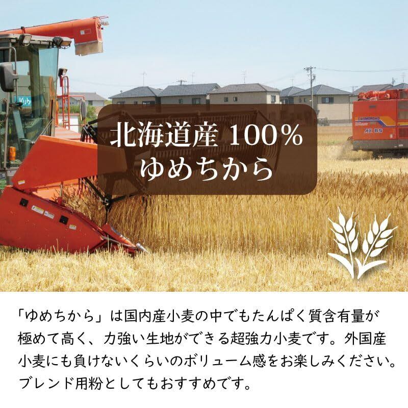 「ゆめちから」はタンパク質含有量が高く、力強い生地ができる超強力小麦です。外国産小麦にも負けないくらいのボリューム感をお楽しみください。