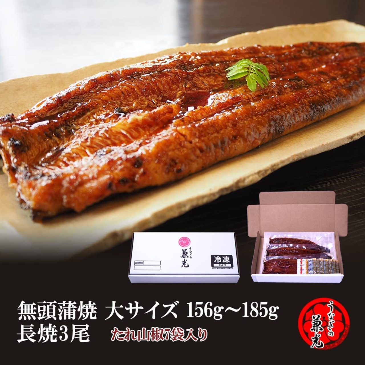 名称:うなぎ蒲焼 内容量:無頭背開き うなぎ蒲焼 156g〜185g×3尾 タレ・山椒7袋