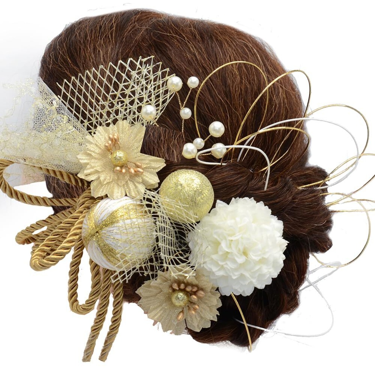 【2022最新】髪飾り 卒業式 成人式 和装 振り袖 ゴールド花 着物 和風 結婚式 七五三 水引 組紐 和玉 ゴールド お正月 花火大会(XTS002)