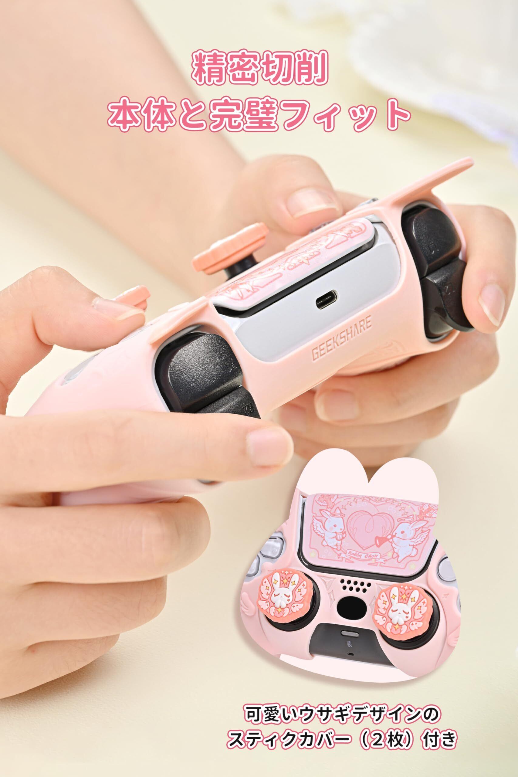 GeekShare PS5コントローラーカバー シリコン製 ソフト スキンケース プレイステーション5 コントローラー対応 PS5コントローラーカバーとシール付け 保護カバー 保護ケース 耐衝撃 簡単装着 滑り止め ほこり防止 PS5保護カバー かわいい ゴシック・ウサギ