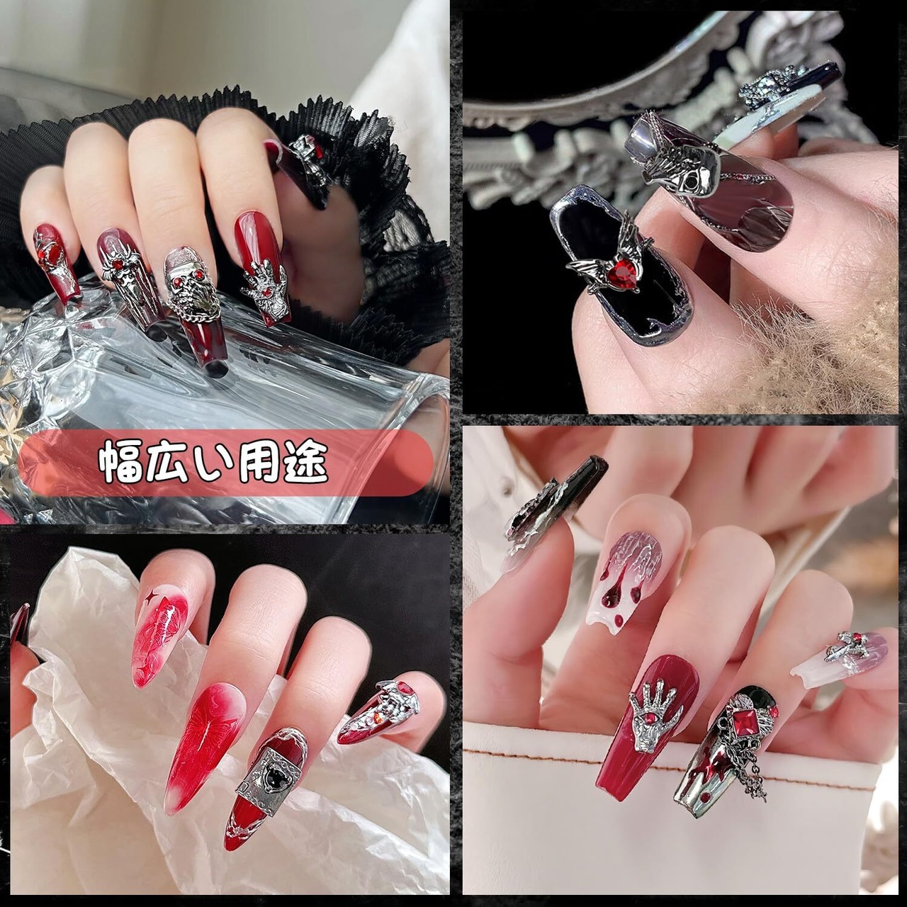 【幅広い用途】パンクやゴシック風も言うまでもなく、ハロウィンにとてもふさわしいです。日常的に他のスタイルに挑戦したい人にもおすすめです。ネイルパーツだけでなく、レジン、スマートフォンケースやアクセサリー、クラフト装飾などにも使用可能です