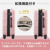 【拡張機能付き】ファスナータイプで、拡張用のファスナーを開ければ、マチ幅を5cm拡張するだけで容量が最大20%UPできる、大容量スーツケース。旅先でお土産が増えても安心です。【サイズ】Lサイズ(約):30×50×76cm 容量:約 96L (拡張時約108L) 重さ:4.2kg。