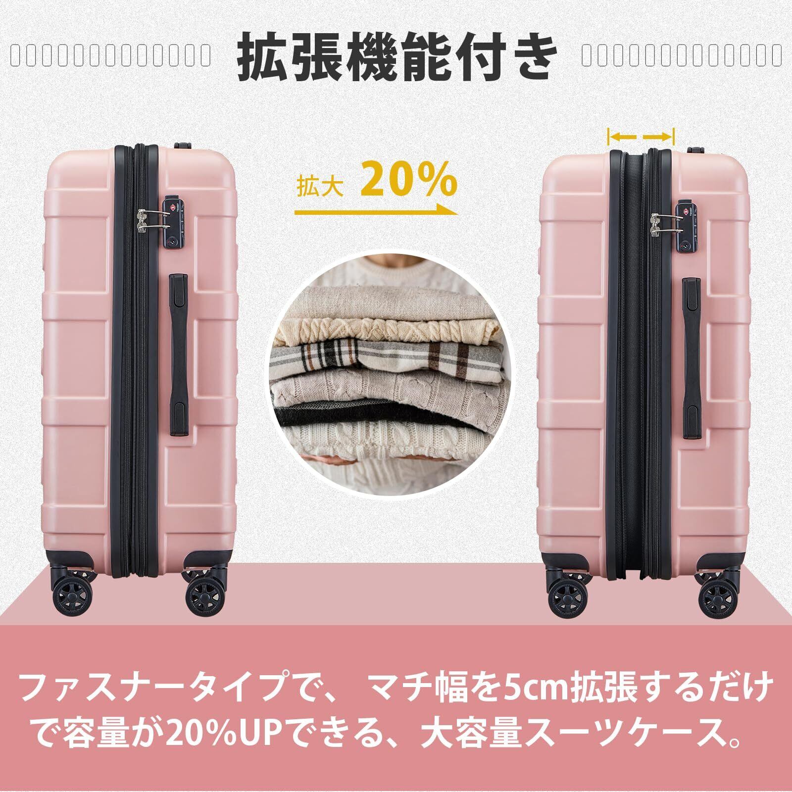 【人気商品】[VIVICITY]スーツケース キャリーケース 機内持ち込み 拡張機能付き キャリーバッグ 軽量 耐衝撃 大型 静音 360度回転 ダブルキャスター TSAローク ファスナータイプ 旅行 出張 入院(Sサイズ、1泊2日、機内持込、 ピンク)