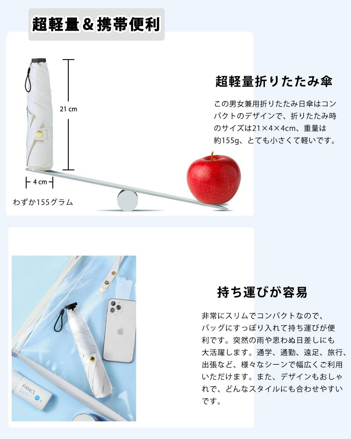 超軽量 & コンパクト設計:初の超軽量設計で、わずか158gの軽さを実現しました。収納サイズは21.5cmと非常にコンパクトで、ハンドバッグやブリーフケースにスムーズに収まります。この軽量かつコンパクトなデザインは、通勤や旅行時に大変便利で、男女問わず手軽に持ち運びできます。幼稚園や小学校の児童にも最適です。