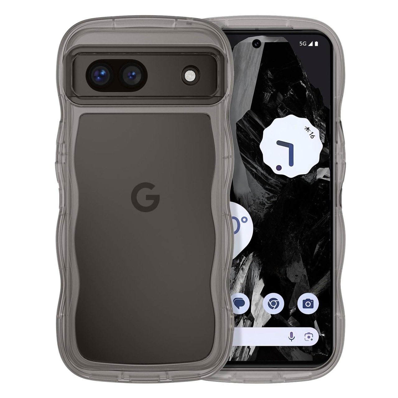 GUAGUA Google Pixel 8A ケース クリア ウェーブ ピクセル 8a ソフト TPU うねうね 透明黒 ケース マツと感 人気 韓国 耐衝撃 超軽量 薄型 おしゃれ 黄ばみなし アクスタが入る スマホケース pixel8a ワイヤレス充電対応 ストラップホール付き グーグルピクセル8a なみなみ カバー(ブラック 透明黒)